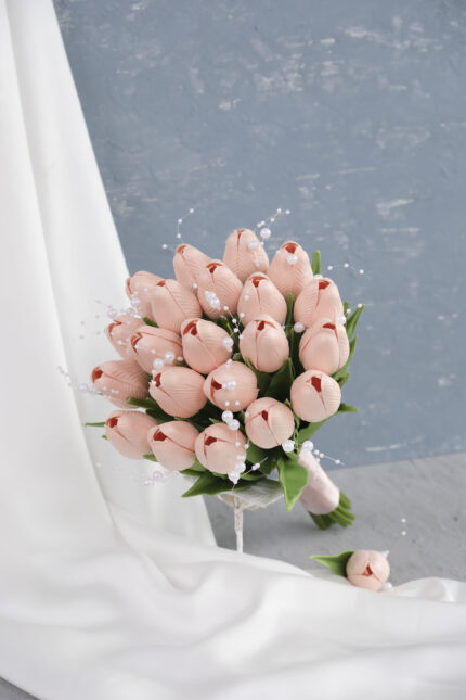 İncili Islak Toz Pembe Lale Gelin Buketi