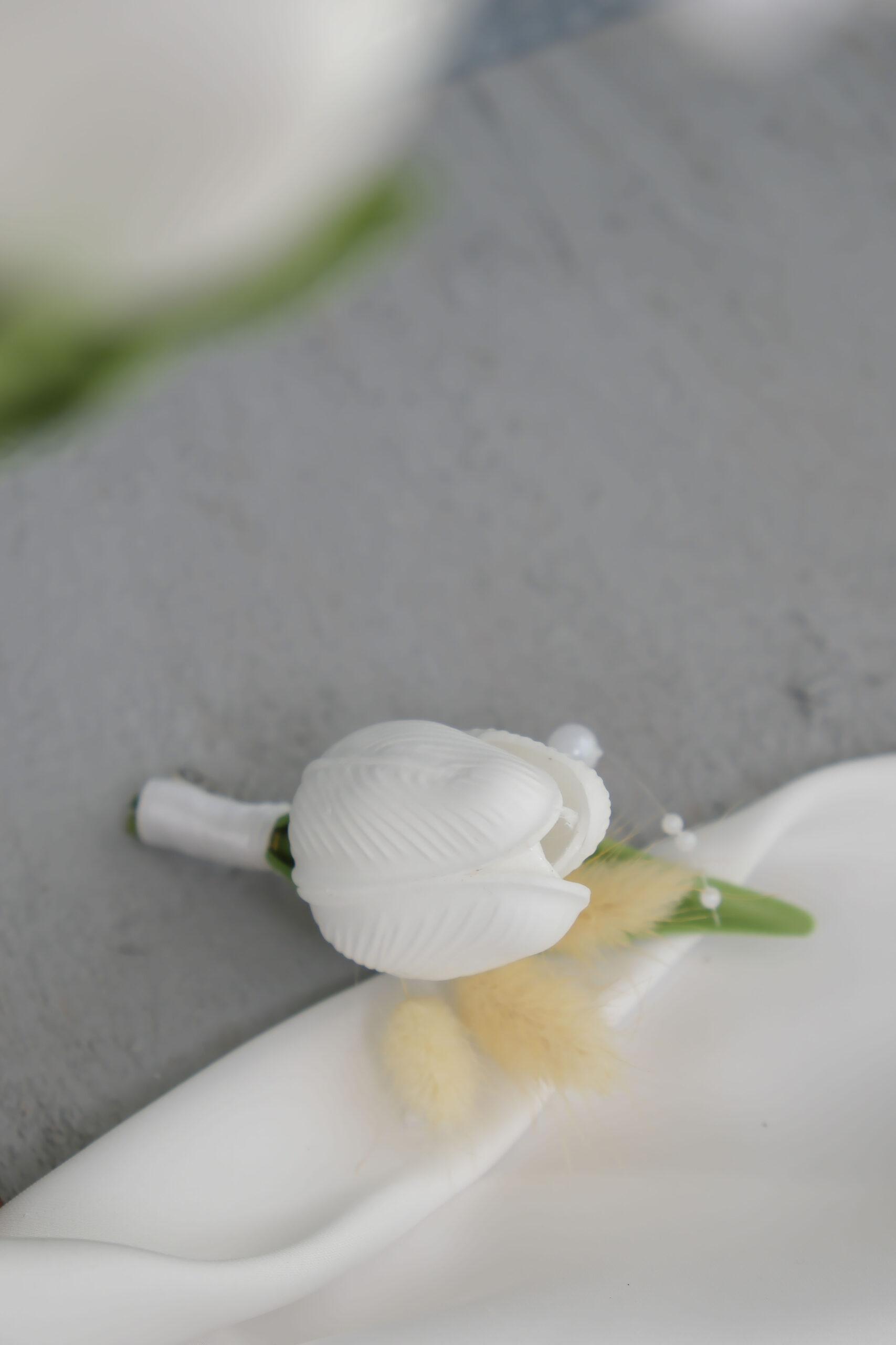 Paket içeriği 1 adet gelin çiçeğidir ve damat yaka çiçeğidir.