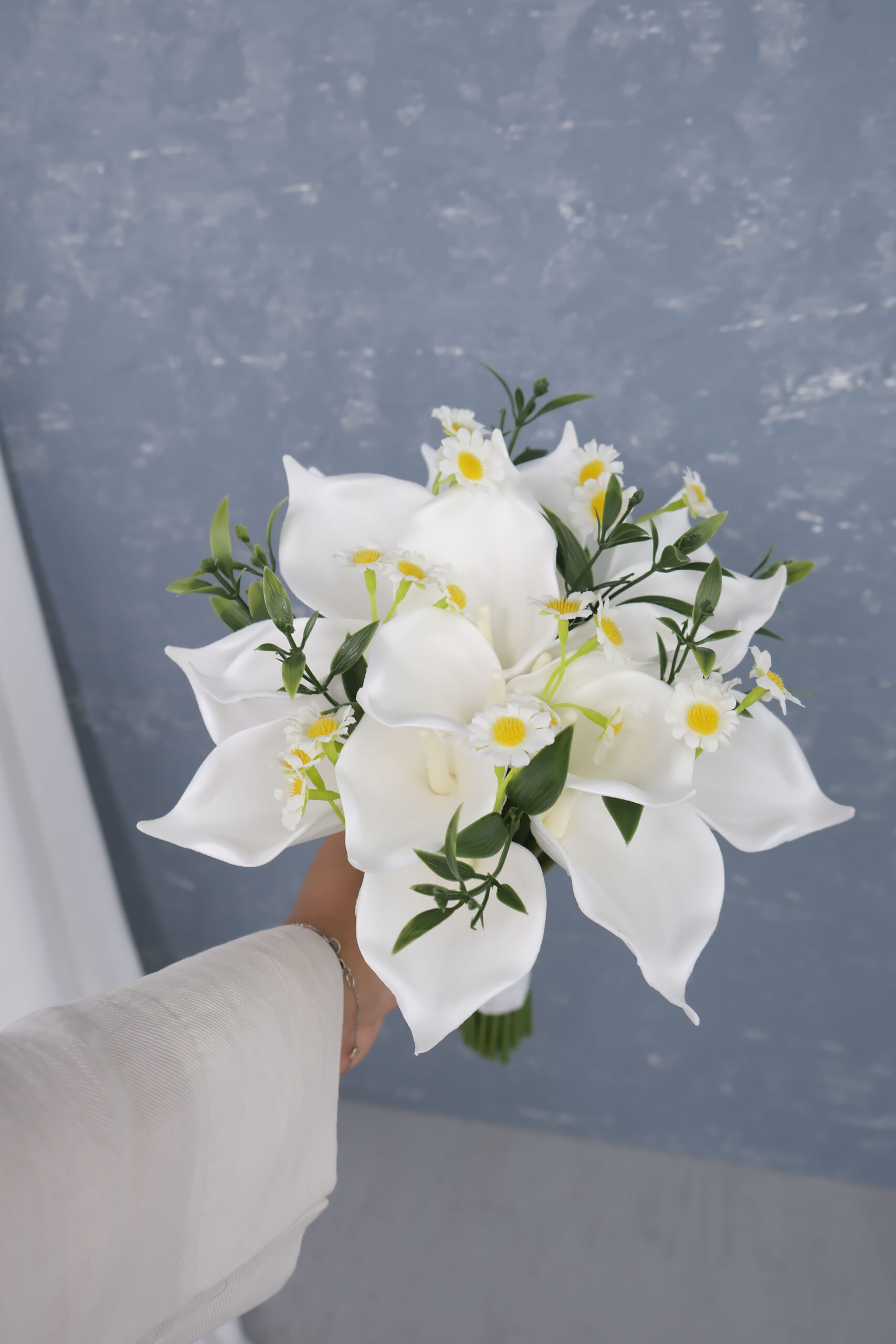 Beyaz Islak Gala Papatyalı Gelin Buketi