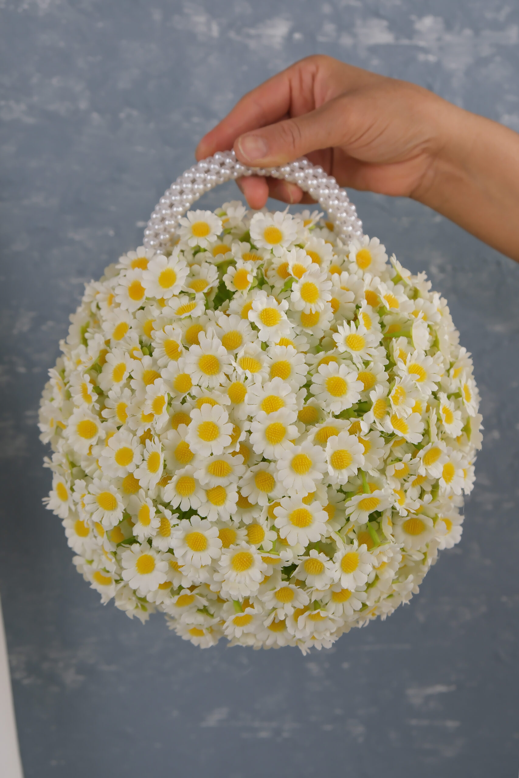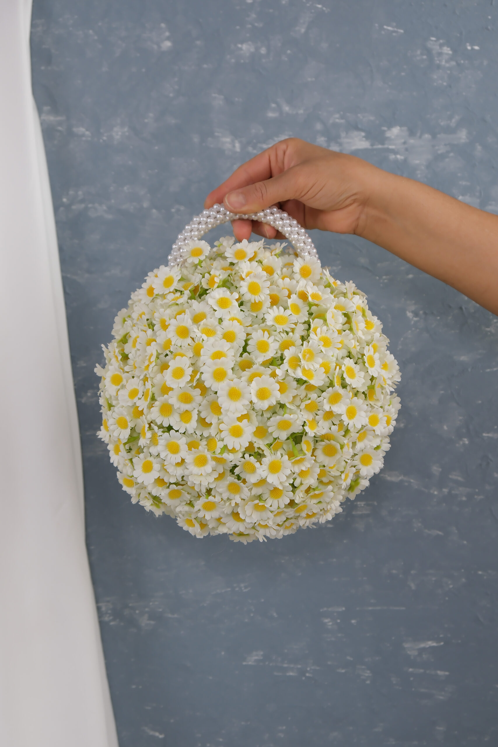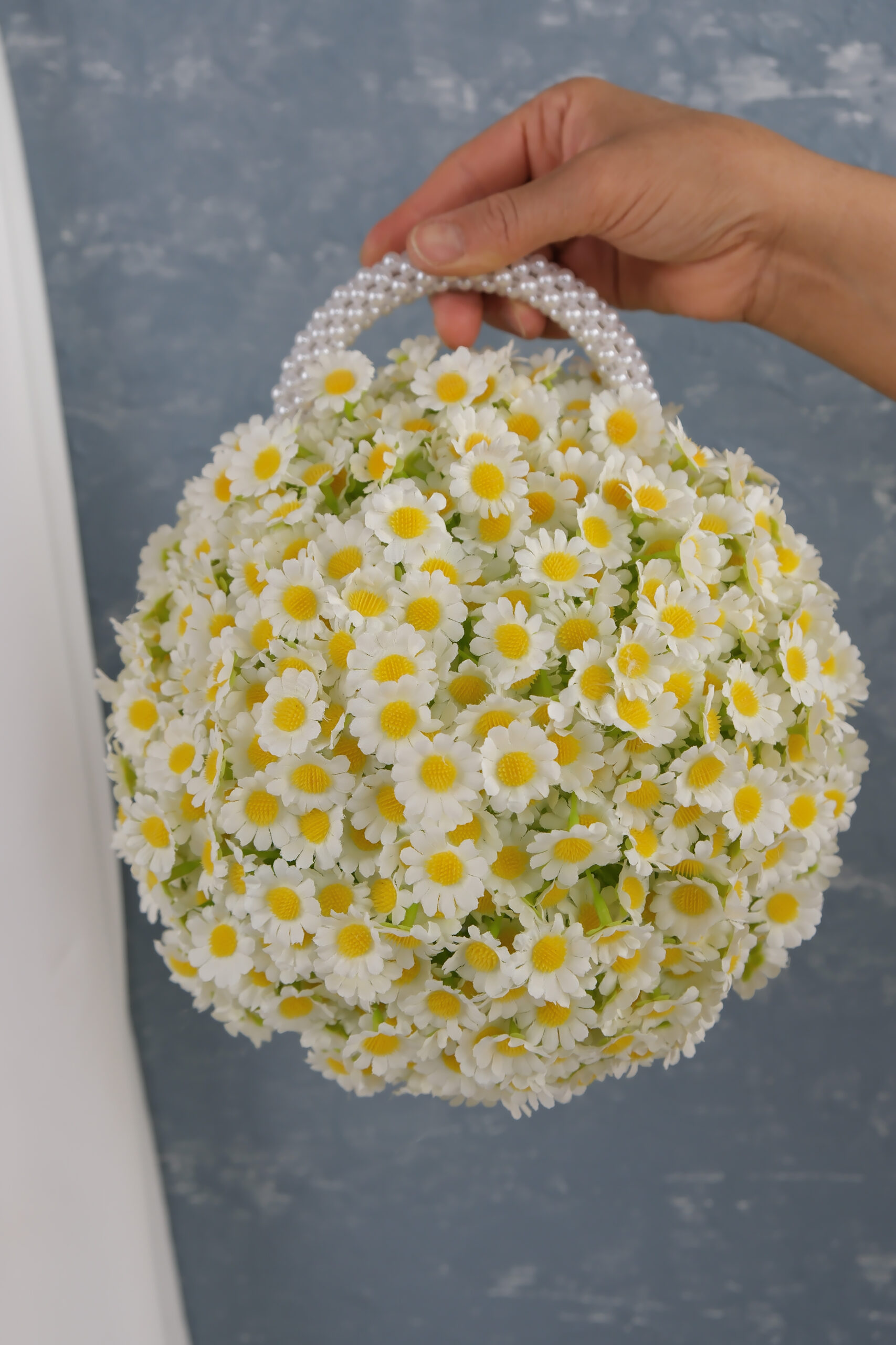 Papatyalı Özel Tasarım Yuvarlak Çanta Gelin Buketi