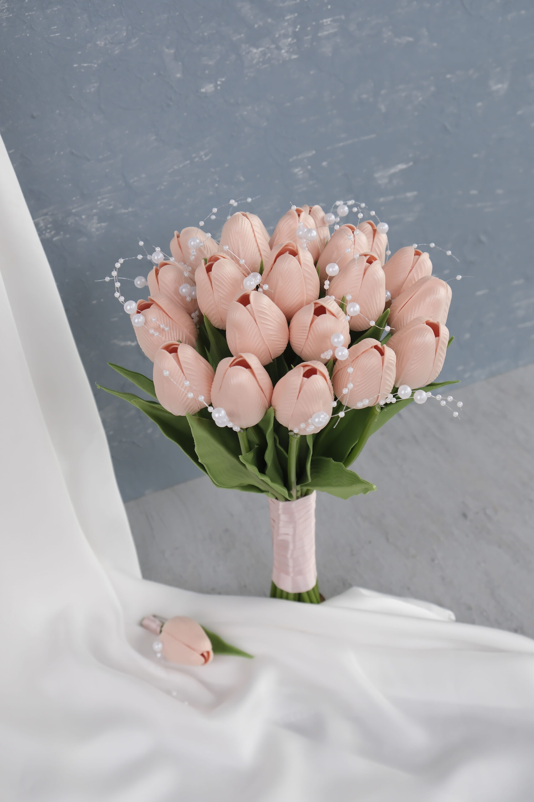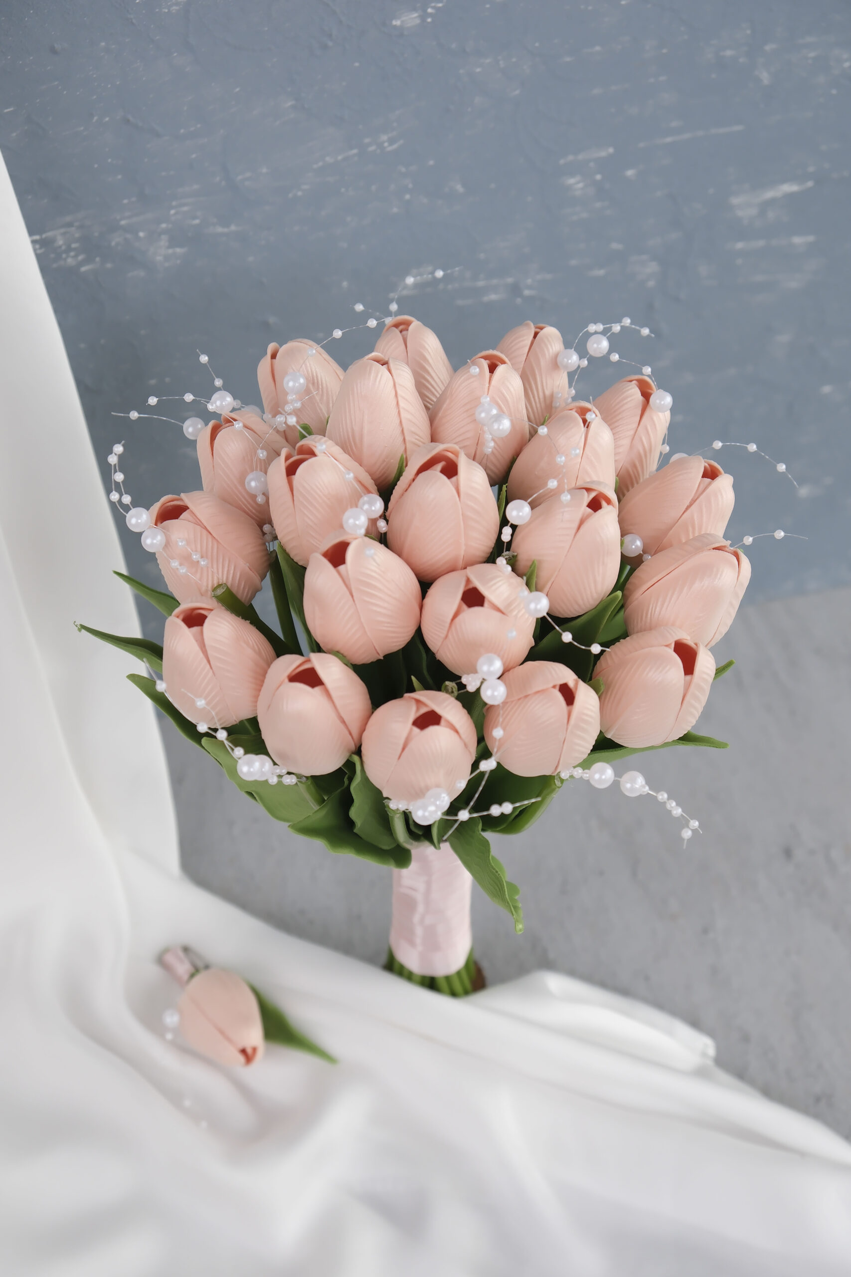 Islak Lale Gala Gül Beyaz Modern Gelin Çiçeği